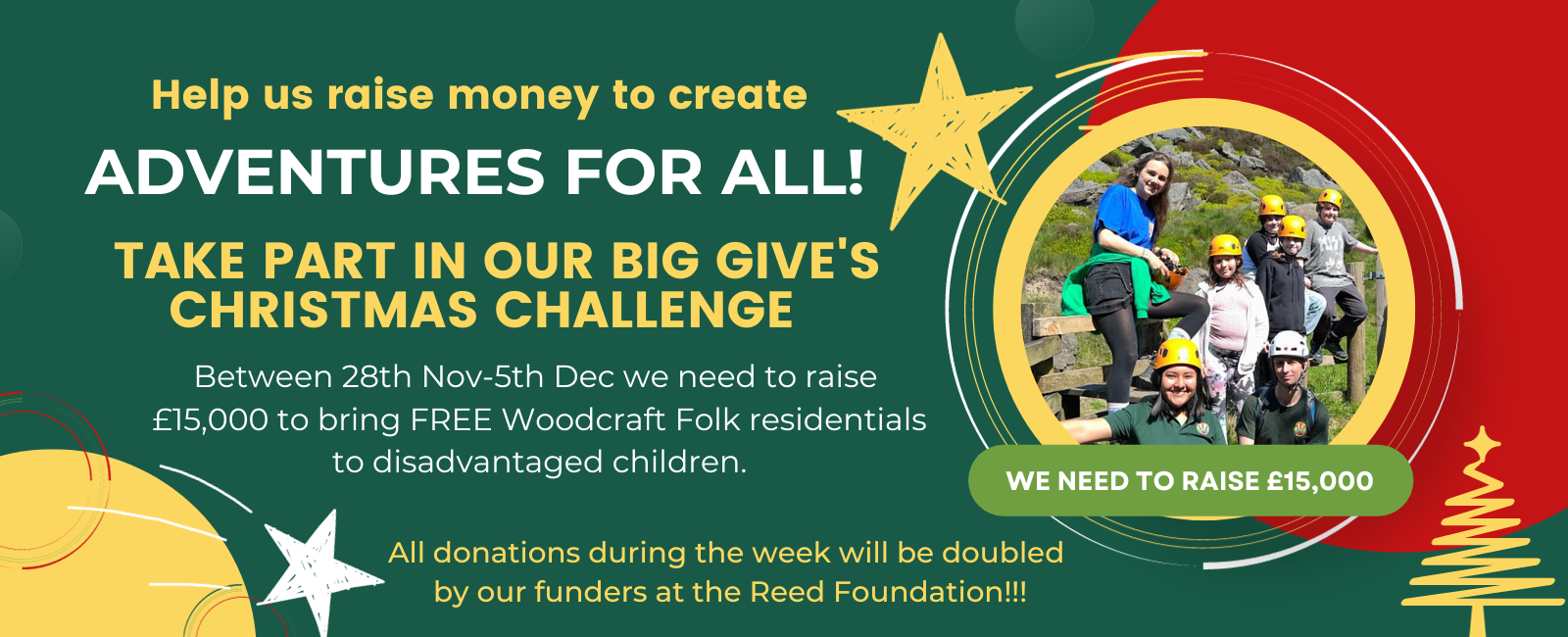 We’re fundraising for Adventures for All, to support more children and young people to take part in Woodcraft Folk camps and adventurous activities. During the Christmas Challenge campaign (28th November-5th December), every donation to Adventures for All will be doubled!