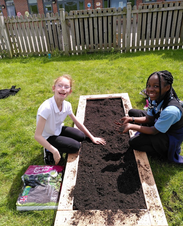 In 2022 the Green Influencers at Coop Academy Grange were awarded £5000 to create a new school garden (the school has never had one). They planned their garden, came up with ideas for the funding application and then with the help of Hyde Park Source (a local community gardening charity) they built their school a beautiful garden with a tent for reading, balance beams to play on and lots of raised beds for vegetables and flowers. They also had financial support from Keelings (a food producer for Co-op) to fill the garden with plants to connect children to where food comes from.