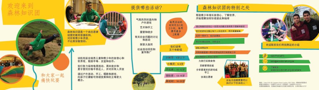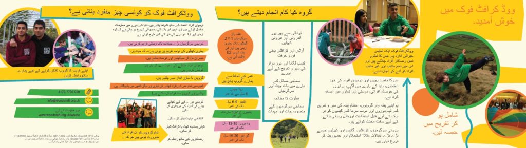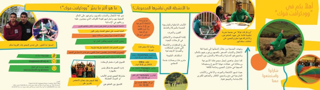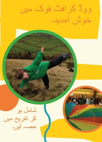 To support our aim to widen participation in Woodcraft Folk, artwork is available for publicity materials in Arabic, Mandarin, Urdu and Polish.
