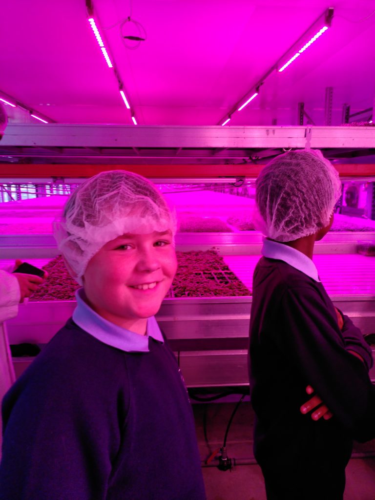 The Coop Academy Nightingale Green Influencers from Leeds were lucky enough to learn about and eat some microgreens at Dawndew near Blackpool. Microgreens are tiny green salad leaves mostly like cress and pea shoots, the group also visited their Willy Wonka style invention room where fun and mysterious things grow in bright pink light including garlic chives! Mm delicious. Microgreens are an efficient, sustainable, healthy, British food and it was great for the Green Influencers to learn more about them. They use hydroponics and grow peas on upcycled carpet instead of in soil because it is better for the environment and their business!! And they gave the group cress and peas to grow in paper at home! Brilliant!