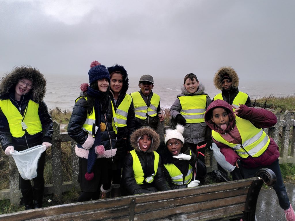 The group, joined by Elaine Brown, Woodcraft Folk’s Green Mentor then went to the seaside in Blackpool to do a litter pick to prevent harmful plastics affecting sea life. It was so stormy the litter pick had to take place on the path high above the waves! The Green Influencers also looked at the electric cars, talked about climate change and ways to have less cars on the road.