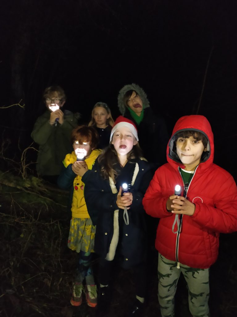 The evening started with the participants having the chance to decorate their own bags to take at home to be used over the festive period. Later on, the group took their torches and went for a night walk into the woods and the beautiful natural area local to Cudham. Elfins, parents and volunteers discovered badger holes and other signs of wildlife living in the woods. They also experienced the sounds of the forest and had many theories of what may be happening in the darkness!